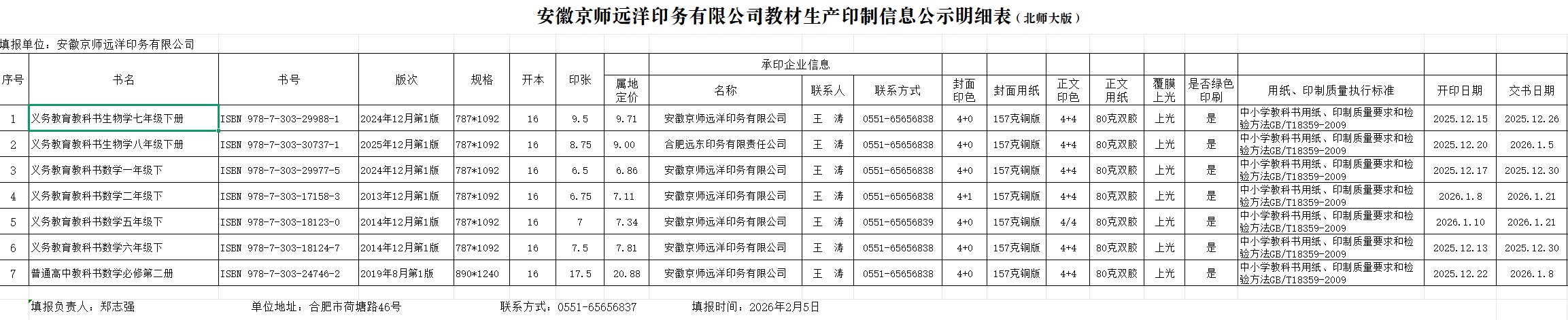 2、2026春_合肥远东印务公司印制教材公示(北师大版)